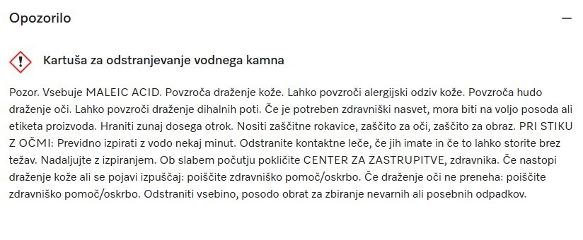 • Brez ostankov kemičnih sredstev po odstranjevanju vodnega kamna