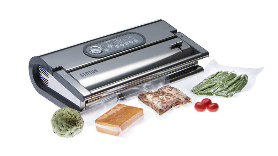 Status Provac ima daljši vakuumski kanal in varilni trak od ostalih aparatov, namesto 28 kar 36 cm. To za vas pomeni, da lahko zavakuumirate cel svinjski kotlet ali celega piščanca v vakuumske vrečke širine 35 cm ali več manjših vrečk hkrati. Tako boste lahko zapakirali tudi po tri suhe salame naenkrat.