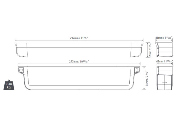 Dimenzije: 292mm (š) x 54mm (v) x 48mm (g)