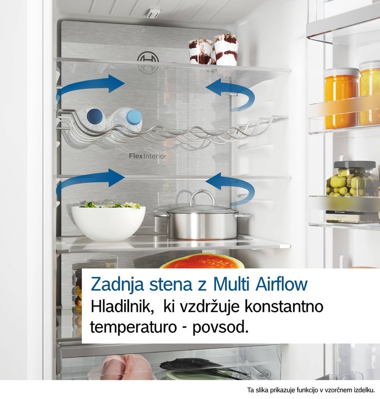 Kovinska zadnja stena z MultiAirflow: enakomerno kroženje hladnega, svežega zraka za vzdrževanje enakomernih temperatur.