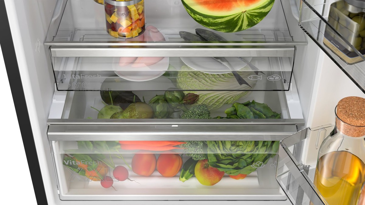 • VitaFresh XXL: sadje in zelenjava dlje časa ostane sveže v posebej velikih predalih z nadzorovano klimo.