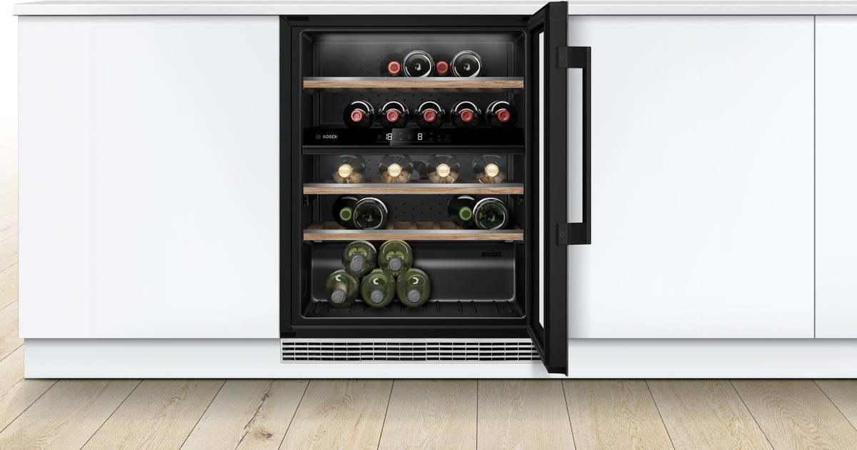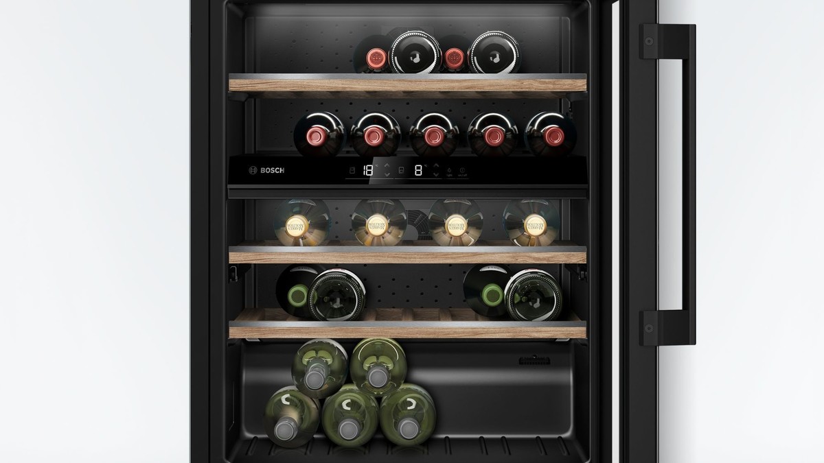 Prostorna vinska vitrina ponuja prostor za shranjevanje do 44 steklenic na popolni temperaturi za pitje.