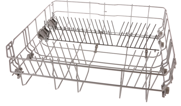 Spodnja košara za posodo, spodnji nosilec v srebrni barvi, z dvema preklopnima zobcema v temno sivi barvi 20002125