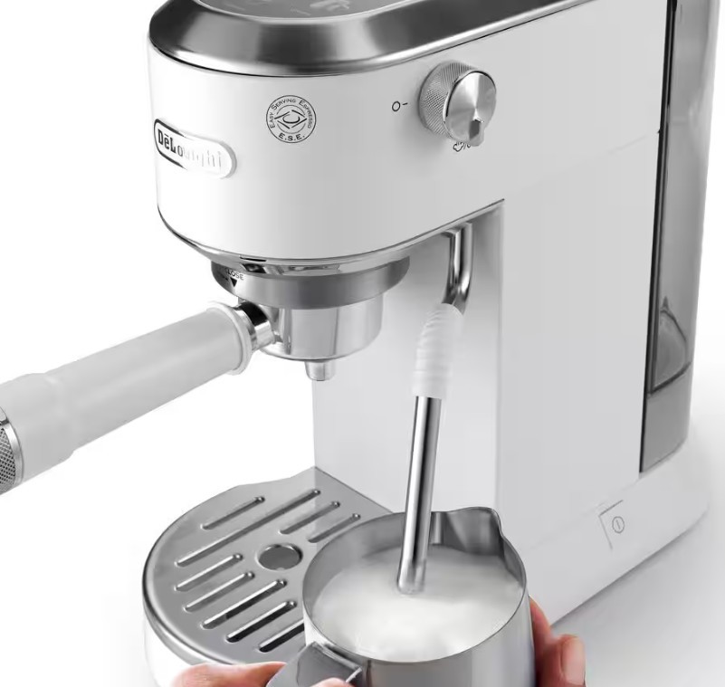 Obvladajte umetnost Espressa, Cappuccina in še več kave in mlečnih pijač doma z Dedico Duo. Uživajte v vroči in hladni kavi, vključno z ekskluzivnim receptom Cold Brew, in svojim pijačam zagotovite barista pridih s parno paličico My LatteArt. Ta kompaktni aparat ustreza vsakemu prostoru in brezhibno dodaja italijanski slog vaši kuhinji.
