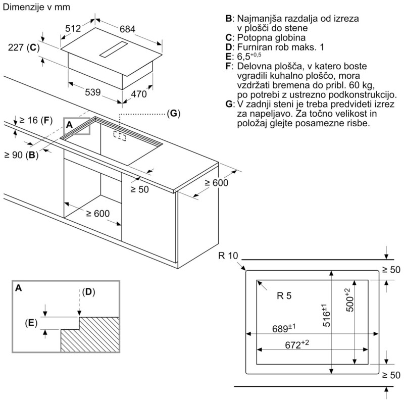 • 70 cm, ploska vgradnja