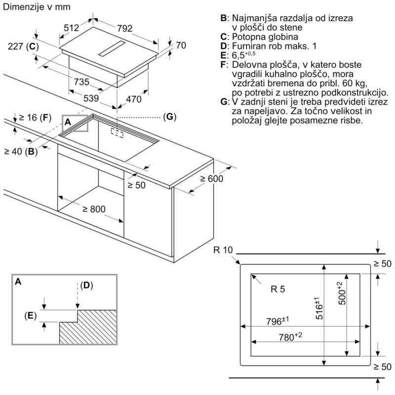 • 80 cm, ploska vgradnja