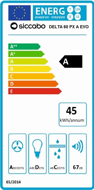 Kuhinjska napa SICCABO DELTA EVO PX A 60 s svojim unikatnim kaminskim videzom sodi v energijski razred A. Ima alu maščobni filter, katerega preprosto operete v pomivalnem stroju enkrat na tri mesece. Je visoko učinkovita, z največjim pretekom zraka do 644 m3/h in kakovostno LED osvetlitvijo.