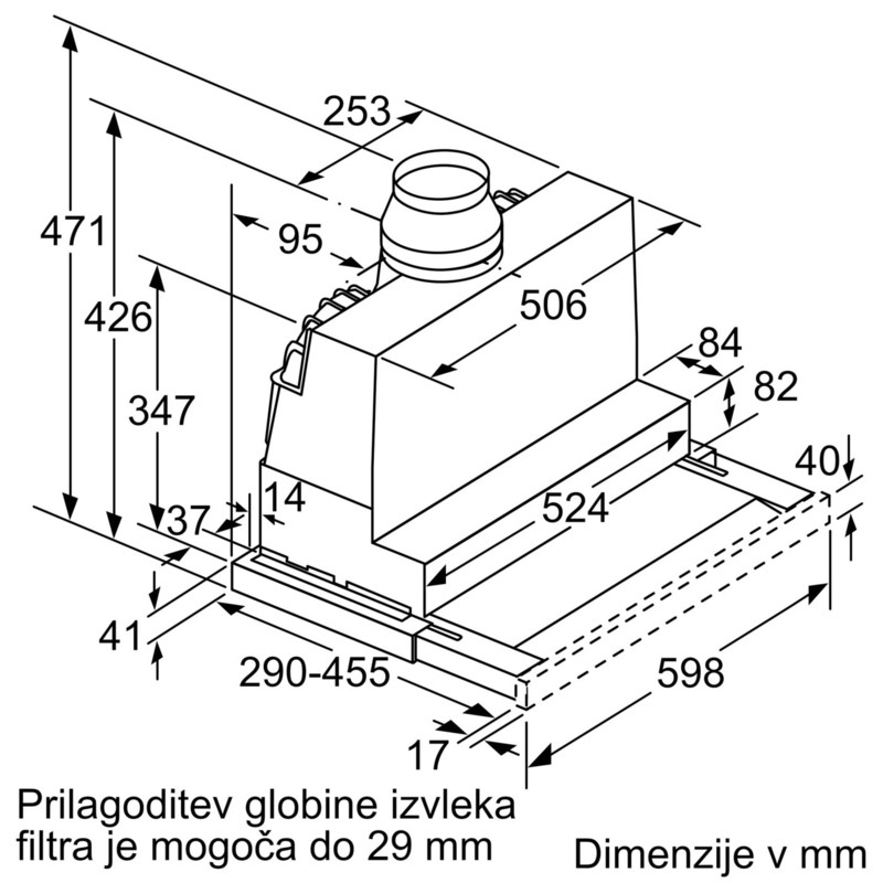 Teleskopska napa: komaj vidna, vgrajena v stensko omaro, kar zagotavlja jasen dizajn kuhinje.