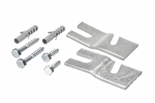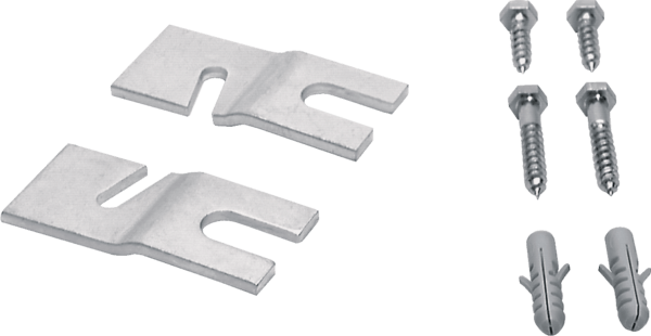 Komplet vsebuje dve kovinski pritrdilni ploščici, šestrobne vijake in vložke.