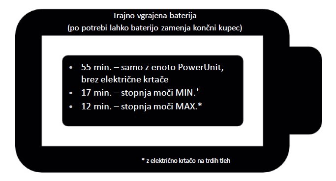 • Litij-ionski akumulator do 55 minut delovanja z enim polnjenjem