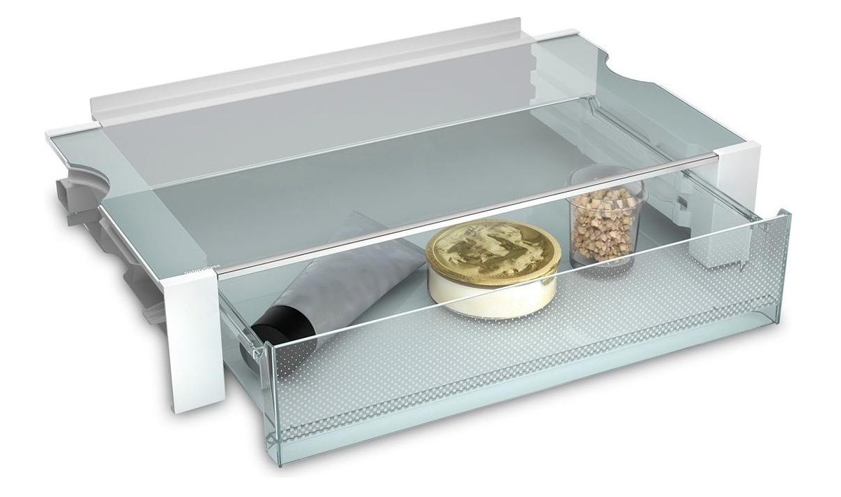 VarioSafe zagotavlja pregled in poskrbi za urejen hladilnik. Je idealno mesto za shranjevanje majhnih živil, kot so tube in kozarci.