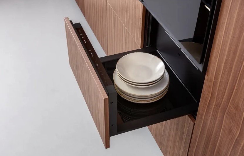 Minimalistični dizajn večnamenskega predala BORA ne vključuje vsega odvečnih elementov in navdušuje s površino brez ročajev. Diskretno se integrira v vsako sodobno kuhinjo. Dizajn »All Black« steklene sprednje plošče BORA daje sodoben videz – zlasti v kombinaciji s parno pečico BORA X BO, ki je na voljo v istem videzu.